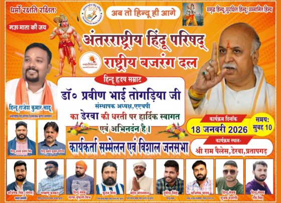 डेरवा की धरती पर गूंजेगा हिंदुत्व का शंखनाद डॉ. प्रवीण भाई तोगड़िया के आगमन से कार्यकर्ता सम्मेलन व विशाल जनसभा ऐतिहासिक बनने को तैयार